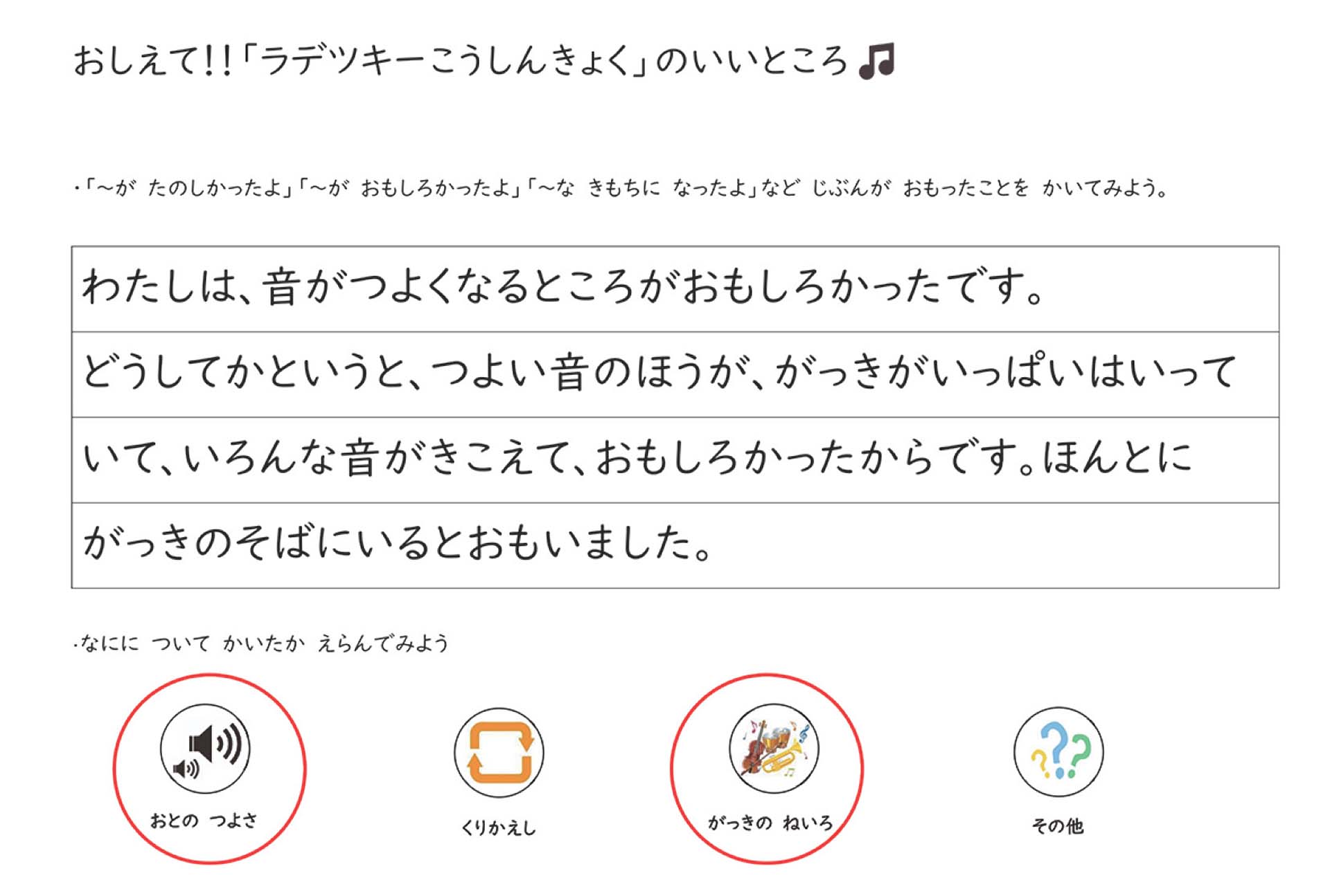 ● 『ラデツキー行進曲』の楽しいと思うところやその理由を見つけてワークシートに記入する。